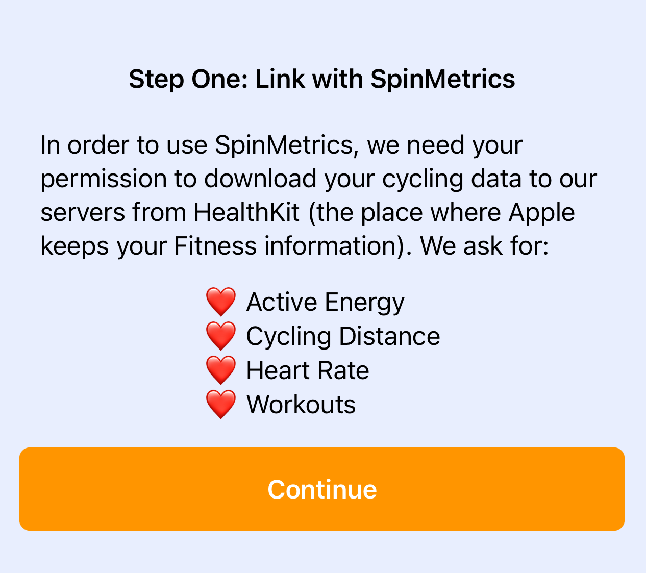 A: SpinMetrics syncs with Apple Health. To be really clear, if you don't see these two images below somewhere