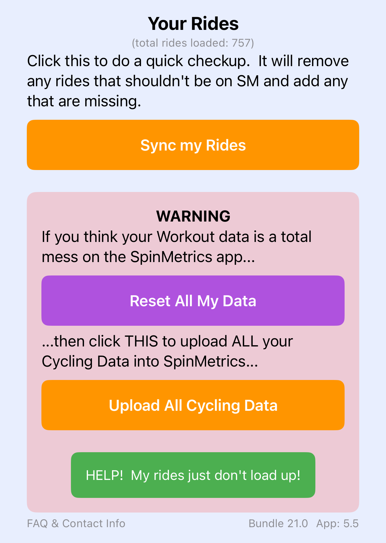 Permission: You need to give SM permission to read your ride data. If you see either of the screens below, you'll need to go to Settings on your phone, into the ❤️ Health settings and give us all the permissions we are asking for: